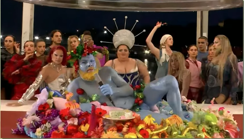“And you think about that in terms of our own depraved elites and the only thing that likely really excites them is the idea that they might get caught, right, and they’ve got to get more and more extreme and flaunt it in our faces as if they’re daring us to say anything,” says Owens, flashing on the screen a shot of the brazenly degenerate France Olympics transgender show.